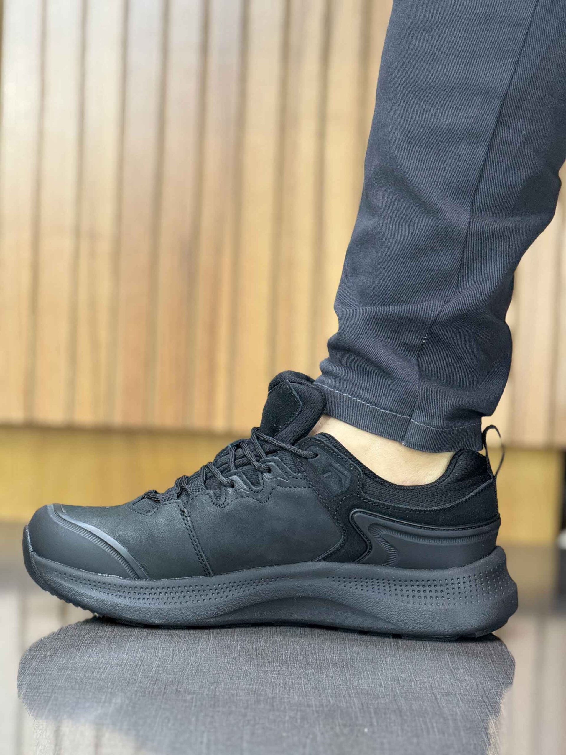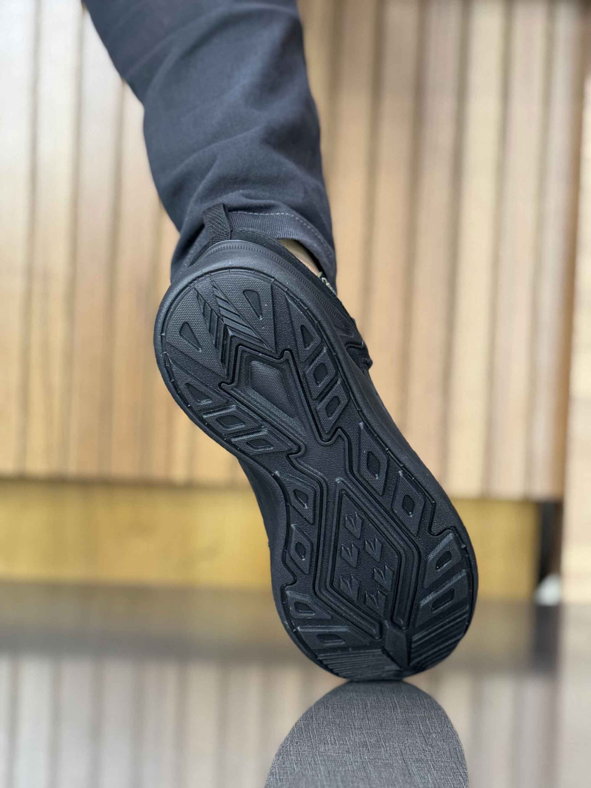 رویهی مشبک و تنفسپذیر، پا را در طول روز خنک و راحت نگه میدارد، در حالی که کفی طبی قابل تعویض، حس آرامش را در هر قدم تقویت میکند. رنگ مشکی با جزئیات مینیمال، ظاهری شیک و مردانه به کفش بخشیده که بهراحتی با استایلهای اسپرت و روزمره ترکیب میشود.